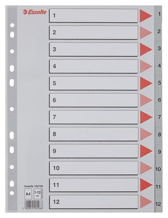 Regiszter, műanyag, A4, 1-12, ESSELTE, szürke