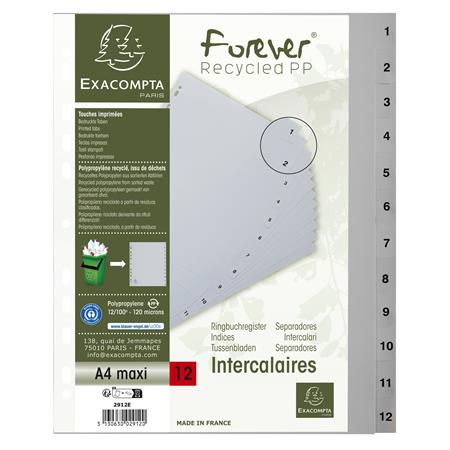 Regiszter, műanyag, A4+, 1-12, EXACOMPTA, szürke