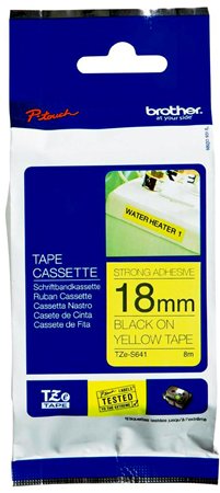 Feliratozógép szalag, erős tapadású, 18 mm x 8 m, BROTHER, "Professzionális TZe-S641" sárga-fekete