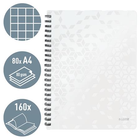 Spirálfüzet, A4, kockás, 80 lap, LEITZ "Wow", fehér