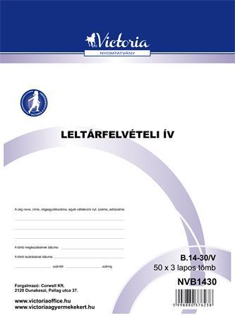 Nyomtatvány, leltárfelvételi ív, 50x3, A4, VICTORIA PAPER, "B.14-30", 10 tömb/csomagAlapítvány támogatás 5 Ft
