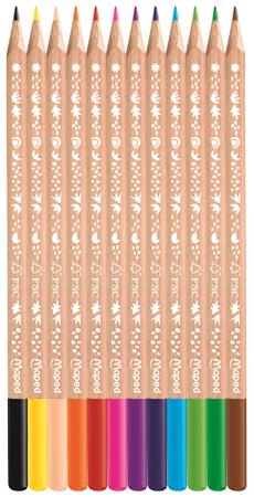 Színes ceruza készlet, háromszögletű, FSC, MAPED "Smiling Planet", 12 különböző szín