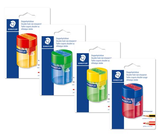 KezdőlapIrodaszerekÍrószerekHegyezőkHegyező, kétlyukú, STAEDTLER "511 006", vegyes színek