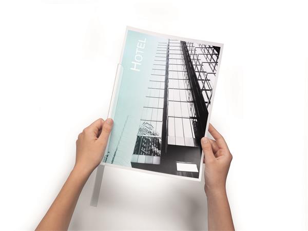 Iratsín, a dokumentumok lyukasztás nélküli lefűzésére, lekerekített sarkokkal, melyek megkönnyítik a papír behelyezését