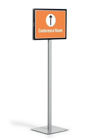 Az INFO STAND BASIC padlóállvány mindkét oldalról olvasható, így mind információk bemutatására, mind tájékozódási és útmutató rendszerként is használható.