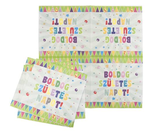 Szalvéta, 33x33 cm, "Boldog Születésnapot", zászló minta