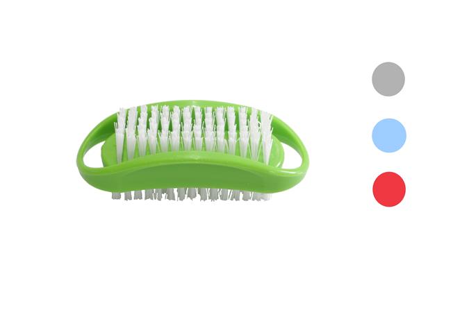Mindkét oldalán kefével ellátott műanyag körömkefe vegyes színekben (lila, piros, fehér, zöld)