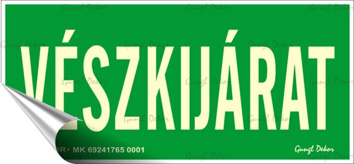 Információs matrica, 25x11,5 cm, fluoreszkáló, utánvilágítós, "Vészkijárat"