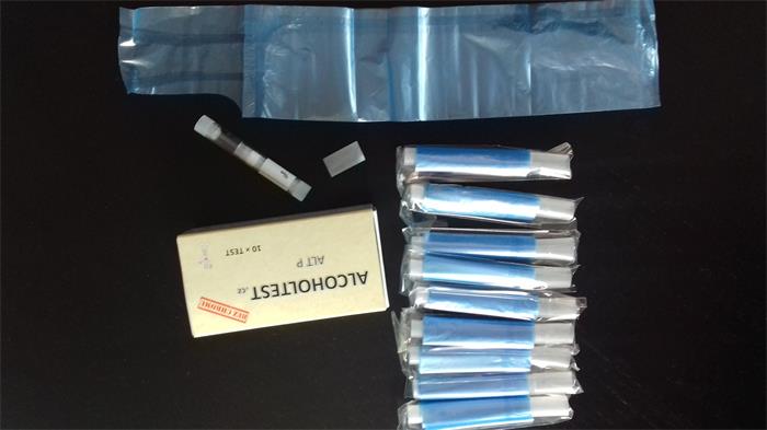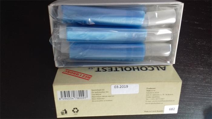 Kémiai alkohol-teszter, befújós, egyszer használható