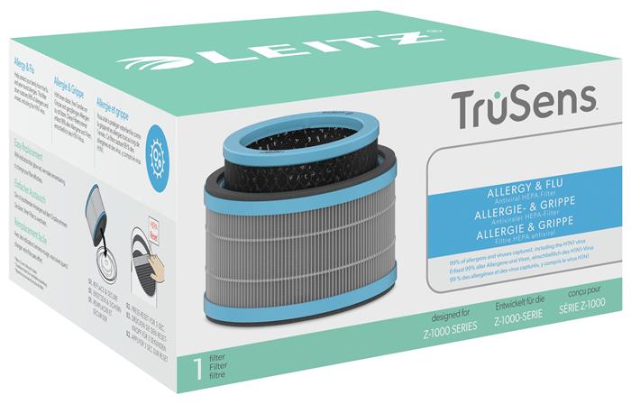 -a dobszűrő a légtisztítás legfontosabb eleme, mely képes kiszűrni a levegőben található allergének és vírusok, beleértve a H1N1 vírus 99.97%-t. A hatékony légtisztítás érdekében a HEPA dobszűrőt 12 havonta javasolt cserélni (a használat gyakoriságától függően). Kompatibilis a Leitz TruSens Z-1000 légtisztítóval